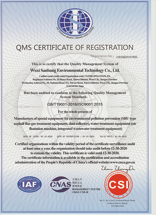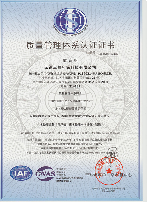 無錫三邦環保科技有限公司位于風景秀麗的太湖之城無錫,這里交通便利,工業發達。無錫三邦環保科技有限公司是一家致力于環境科學研究及污染治理的綜合性企業,主要供應和銷售淺層離子氣浮機、瀝青攪拌站煙氣凈化設備、有機廢氣處理設備、瀝青廢氣處理設備以及vocs有機廢氣處理設備等,產品通過了ISO質量管理體系等多項認證。公司以產品研發、生產、設計、安裝、技術服務等功能一體的專業環保公司,主要從事廢氣治理幾除臭、廢水治理一體化系統,高效節能技術和裝備,我公司承包土壤修復處理,河道治理。承接工程項目的設計的建設,設備加工和供貨,設備運營和維護。本公司自成立以來,以安全、高效、經濟...